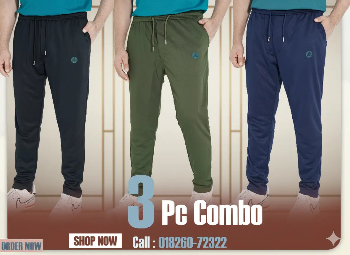 Combo: 3 Premium Trousers (Black, Olive, Navy)